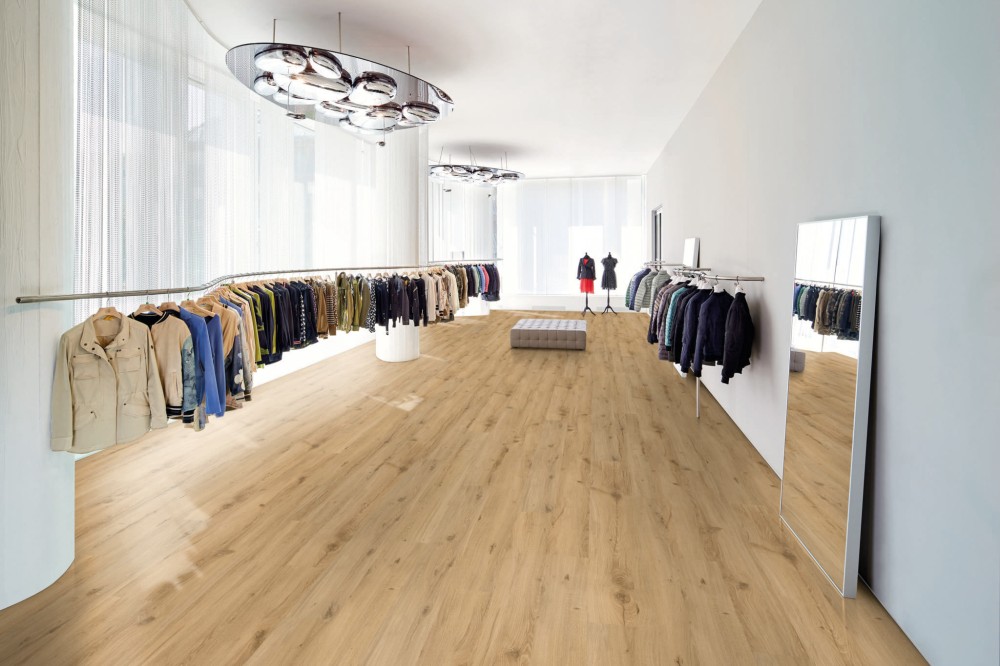 I pavimenti LVT rappresentano una soluzione moderna, versatile e altamente performante per ogni tipo di ambiente sia residenziale che commerciale. Realizzati con materiali innovativi combinano estetica e funzionalità riproducendo fedelmente l’aspetto di legno, pietra o cemento con risultati sorprendentemente realistici. Uno dei principali vantaggi dei pavimenti LVT è la loro elevata resistenza all’usura, ai graffi, agli urti e all’umidità, caratteristiche che li rendono ideali sia per tutti gli ambienti di tipo residenziale che per gli ambienti contract ad alto traffico. Dal punto di vista del comfort , LVT offre una superficie piacevole al tatto, più calda rispetto alle tradizionali piastrelle e contribuisce a ridurre i rumori grazie alle buone qualità fonoassorbenti. La facilità di posa con sistemi sia da incastro (click) che da incollo consente installazioni rapide e senza interventi invasivi. La manutenzione è semplice e veloce. I pavimenti in LVT offrono inoltre grande libertà di personalizzazione grazie alle diverse modalità di posa, tra cui posa a correre, a spina di pesce e a quadrotte o moduli.